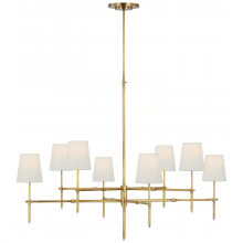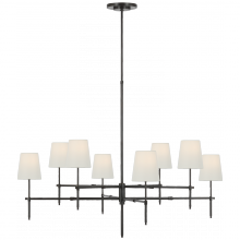 Bryant Extra Large Two Tier Chandelier in Bronze and Hand-Rubbed Antique Brass with Linen Shades