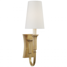 Delphia Small Single Sconce in Bronze and Hand-Rubbed Antique Brass with Linen Shade