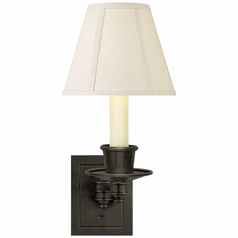 Single Swing Arm Sconce in Bronze with Linen Shade