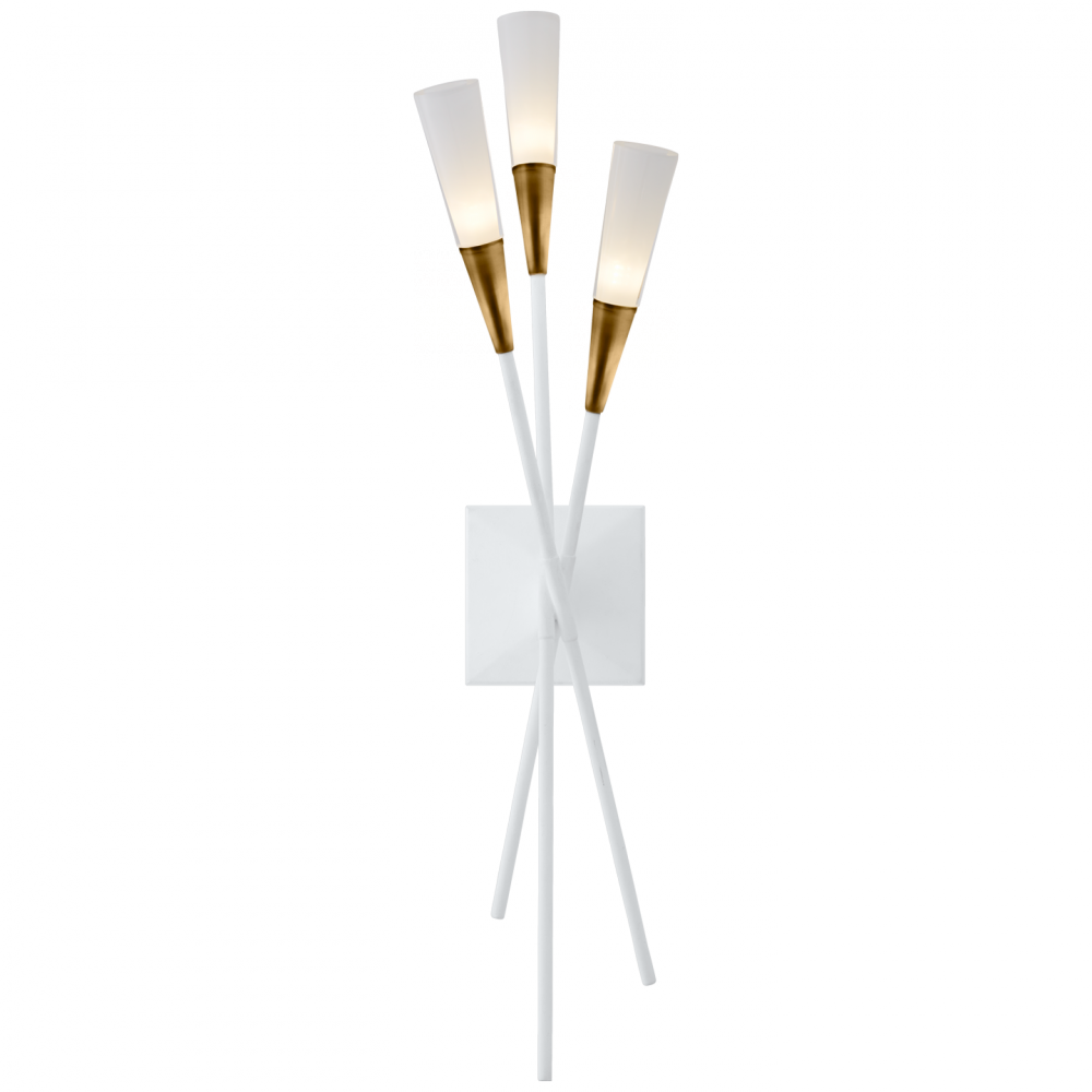 Stellar Triple Tail Sconce in Matte White and Antique Brass with Frosted Acrylic
